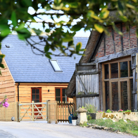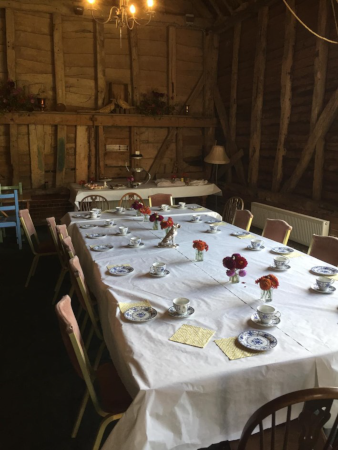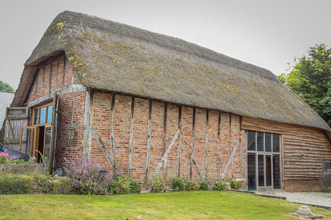 Situated in the middle of the farm yard this 16th Century barn built from ancient ship’s timbers with open beam roof exposing the thatch is a step back in time.
