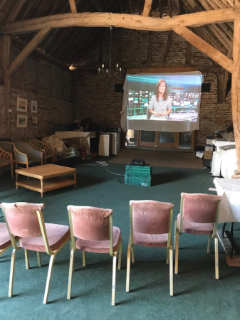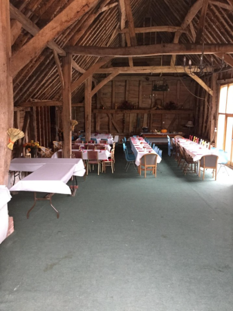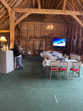 There is a gentle ramp down half the length of the barn a remnant of the old days of growing potatoes with them being rolled down into the barn half a century ago. More recently it has been insulated and fitted with the modern luxury of radiators and Wi-fi. There is a toilet block in the adjacent building.